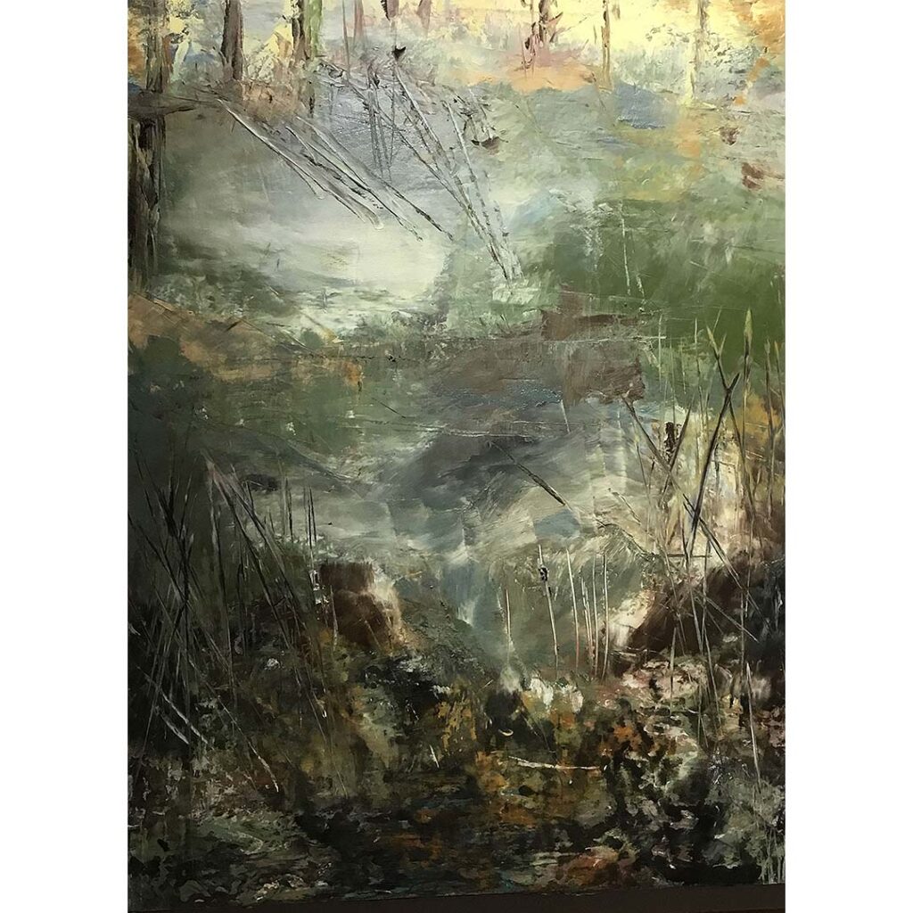 Ultimately, artwork is not created from a passive viewpoint. Rather, these artists are active participants in the process. They view a landscape and return to the studio to rework not only what they have seen in a singular moment, but also to take the whole of their experience in nature and synthesize it – from macroscopic and microscopic perspectives – for the viewer. This is where the landscape is transformed; in its transmission.”