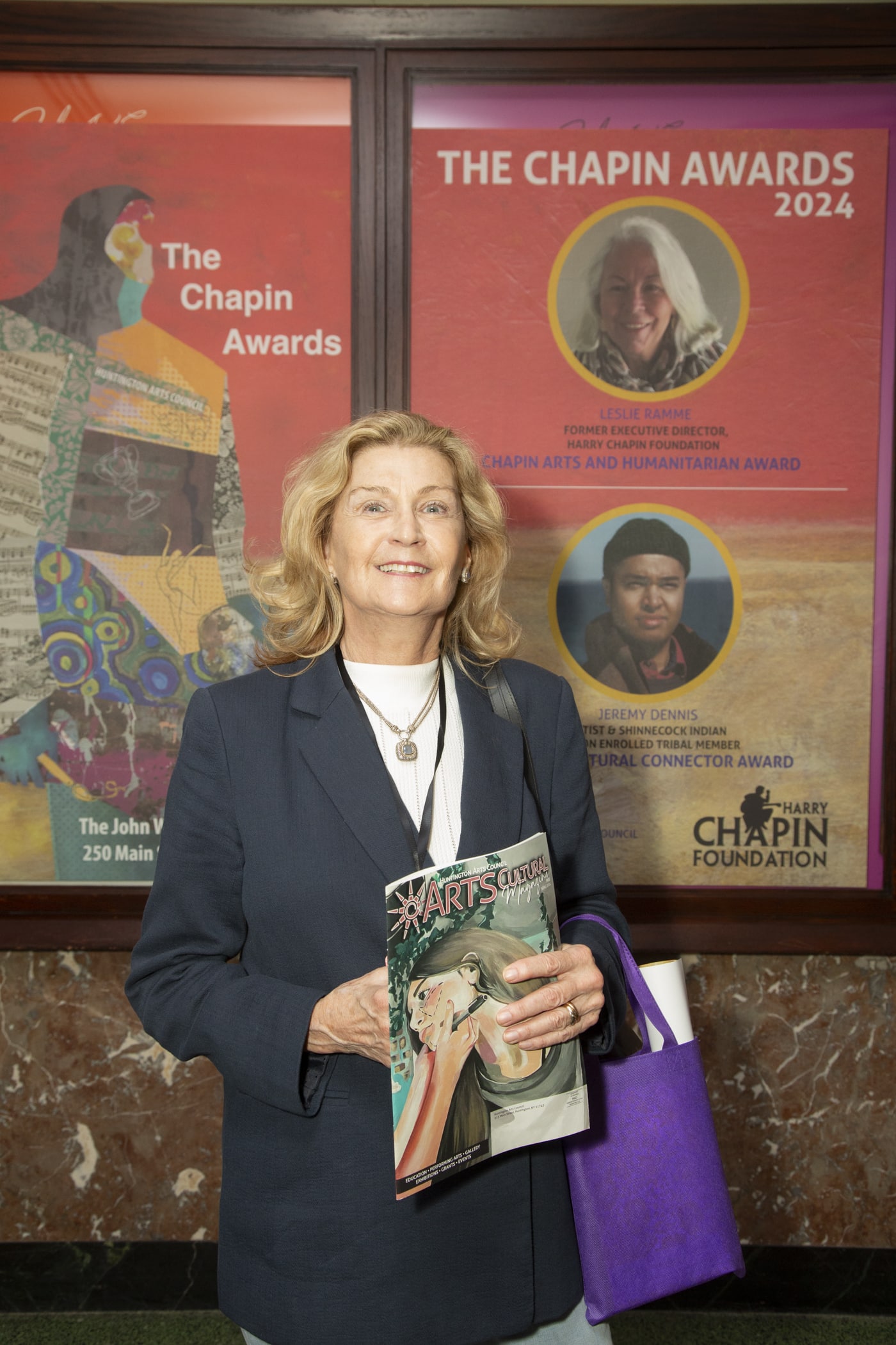 Leslie Ramme, previous Executive Director of the Harry Chapin Foundation was presented with the CHAPIN ARTS & HUMANITARIAN AWARD.