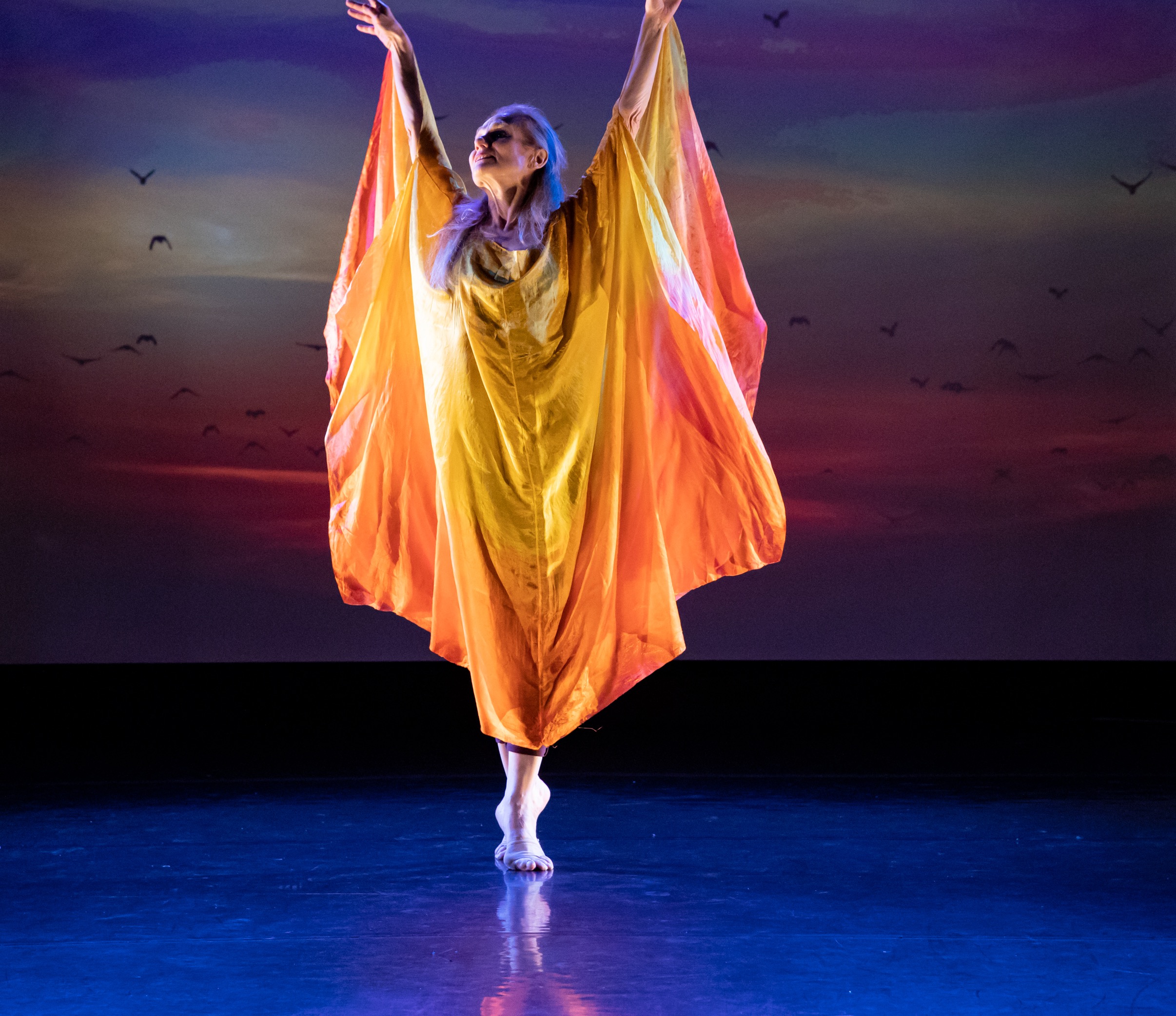 The work has rich and varied dynamics and includes beautiful and eerie depictions of nature through words, movement, costumes and imagery It encompasses timeless and timely themes of destruction leading to creation, darkness to light, endings to beginnings. Included is Isadora Duncan repertory in Grecian tunics, adding to the mythic overtones.