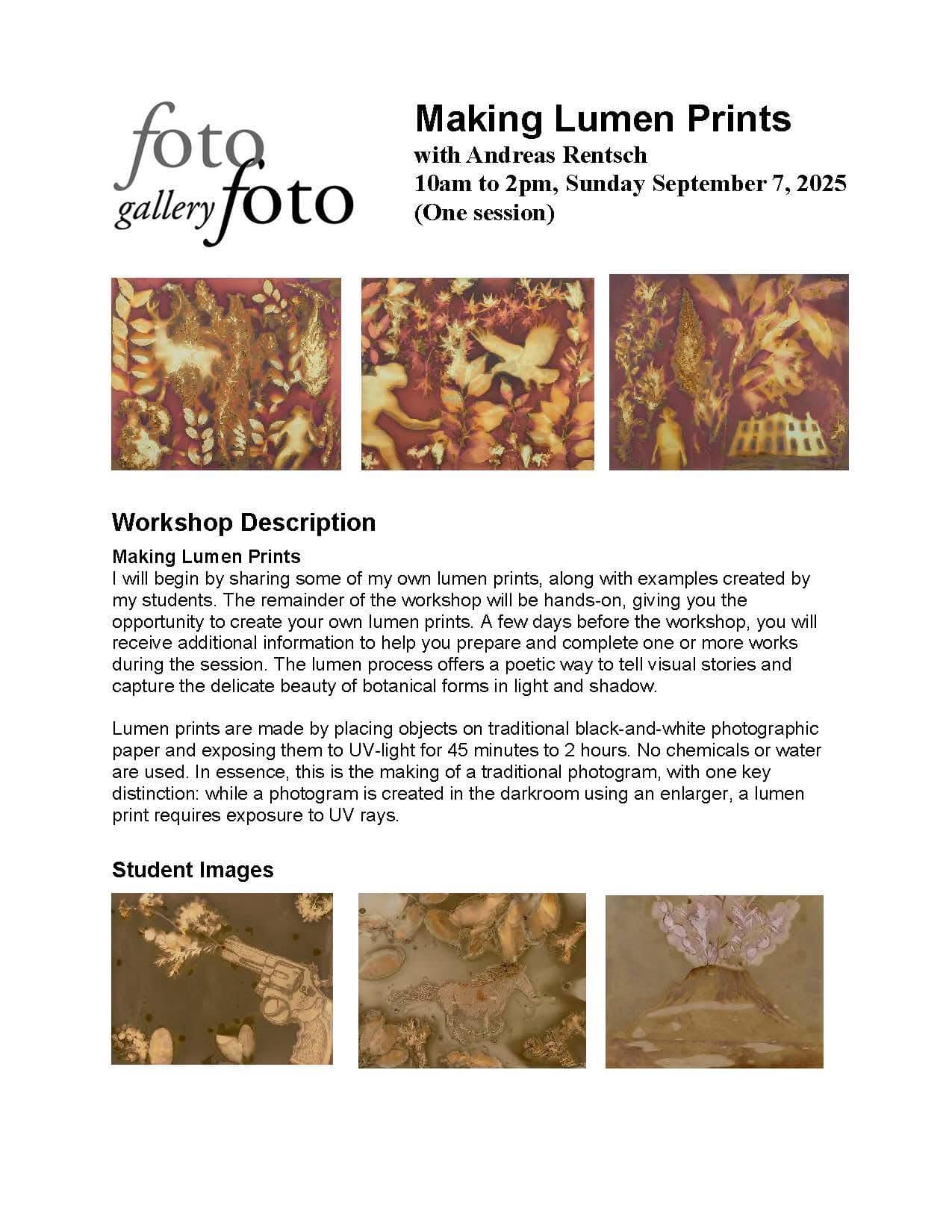 fotofoto gallery presents Lumen Print Workshop with Andreas Rentsch on Sunday, September 7 · 10am – 2pm