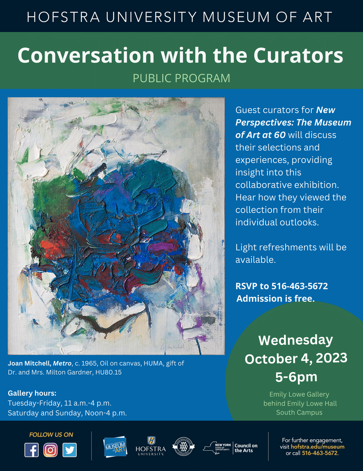 Guest curators from New Perspectives: The Museum of Art at 60 will discuss their selections and experiences, providing insight into this collaborative exhibition. Hear how they viewed the collection form their individual outlooks.