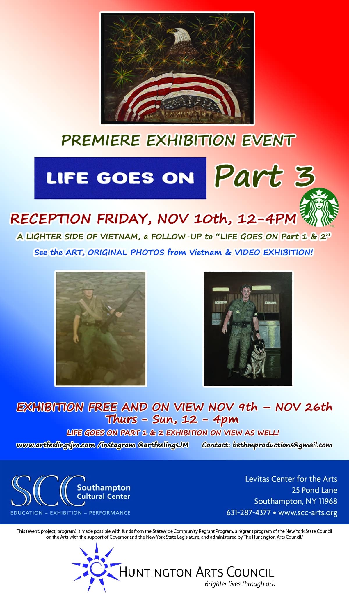 “Life Goes On” Part 3 Multi- Media Exhibition Overview: Surviving PTSD through ART! Huntington hometown, Vietnam Veteran, John Melillo’s Vietnam Journey is reflected through his “Life Goes On Part 3” Painting Series * painted from exclusive Original Photos he took while on tour in Vietnam. In Addition, a short VIDEO Series will be shown where John reflects on the paintings to tell his unique story. PLUS, many of his additional works will be on view that were inspired by his perspective growing up in Huntington as well as historic Southampton, Watermill and Sagaponack where his heritage goes back to the 1890’s. “Getting to the know the East End circa 1950 on served as a great Original Wellspring for my inspiration and paintings today.” JM