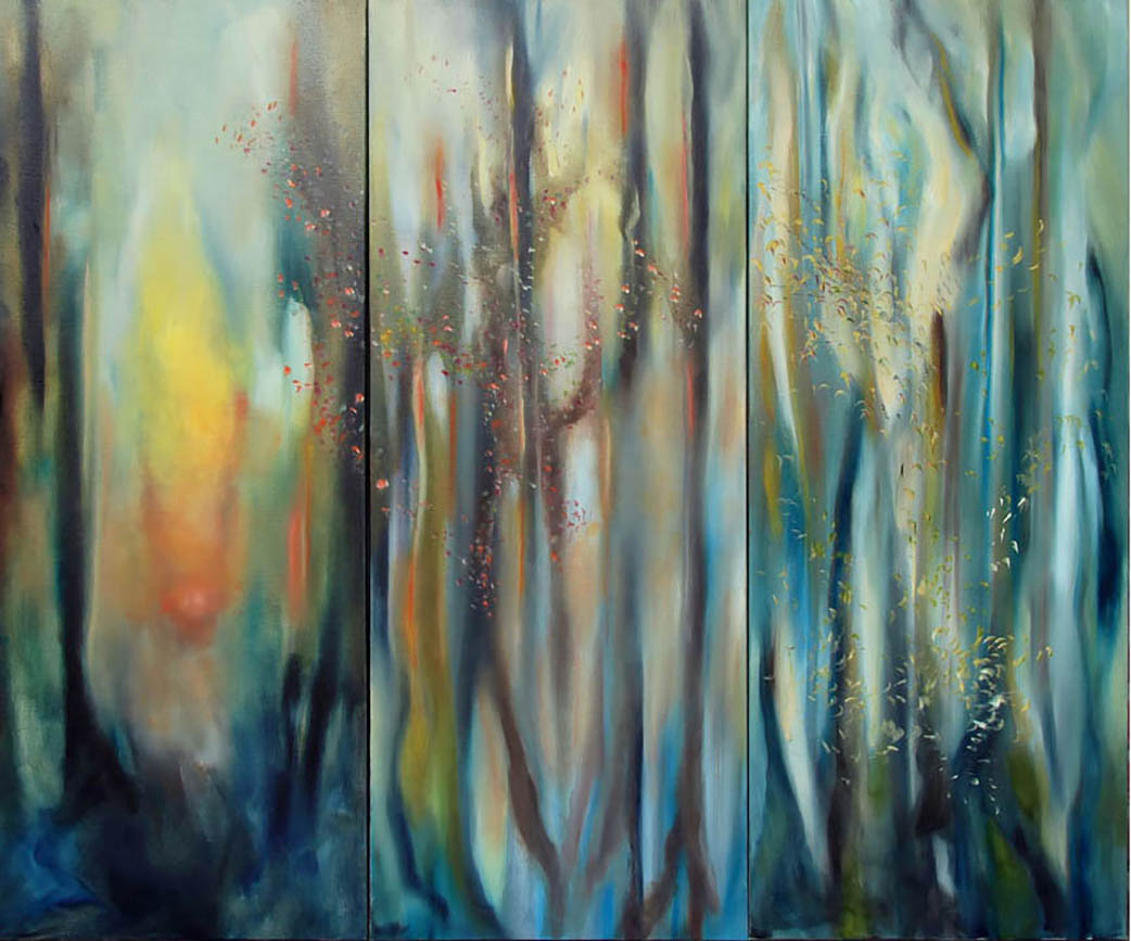 The beautiful Van Loen Art Gallery in the South Hunting Public Library will present a special exhibition called ‘VIRGIN FOREST – MAJESTY OF TREES’ by award-winning artist, Linda Louis, in honor of Earth’s vanishing forests.  The show consists of 16 triptychs, in oils, 48” x 40”, four for each season of the year, symbolizing forests in summer, autumn, Winter, Spring. This work will be on view from Saturday, June 29 through Friday, August 30.  The artist’s reception will be on Saturday, July 13 from 2 -4 pm.  A date for a talk by the artist will be announced.