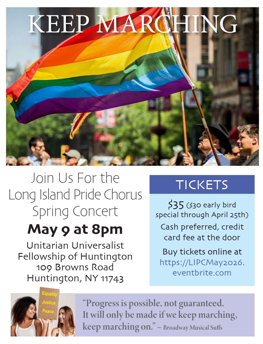 Don’t miss out—happiness is the main guest, and the celebration starts May 9th at 8:00 PM at the Unitarian Universalist Fellowship of Huntington, 109 Browns Road, Huntington, NY 11743.