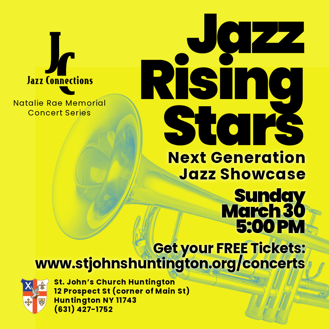 “Jazz Connections” concert series started at St. John’s Huntington in the Spring of 2024 thanks to a donation from the estate of jazz singer Natalie Rae, a student of Lennie Tristano who lived in Huntington and was passionate about promoting jazz music. We aim to bring world-class jazz music to Huntington, promote knowledge and education of jazz as a reflection of the cultural tapestries and complex histories of America and the world and foster community connections based on shared love of music.