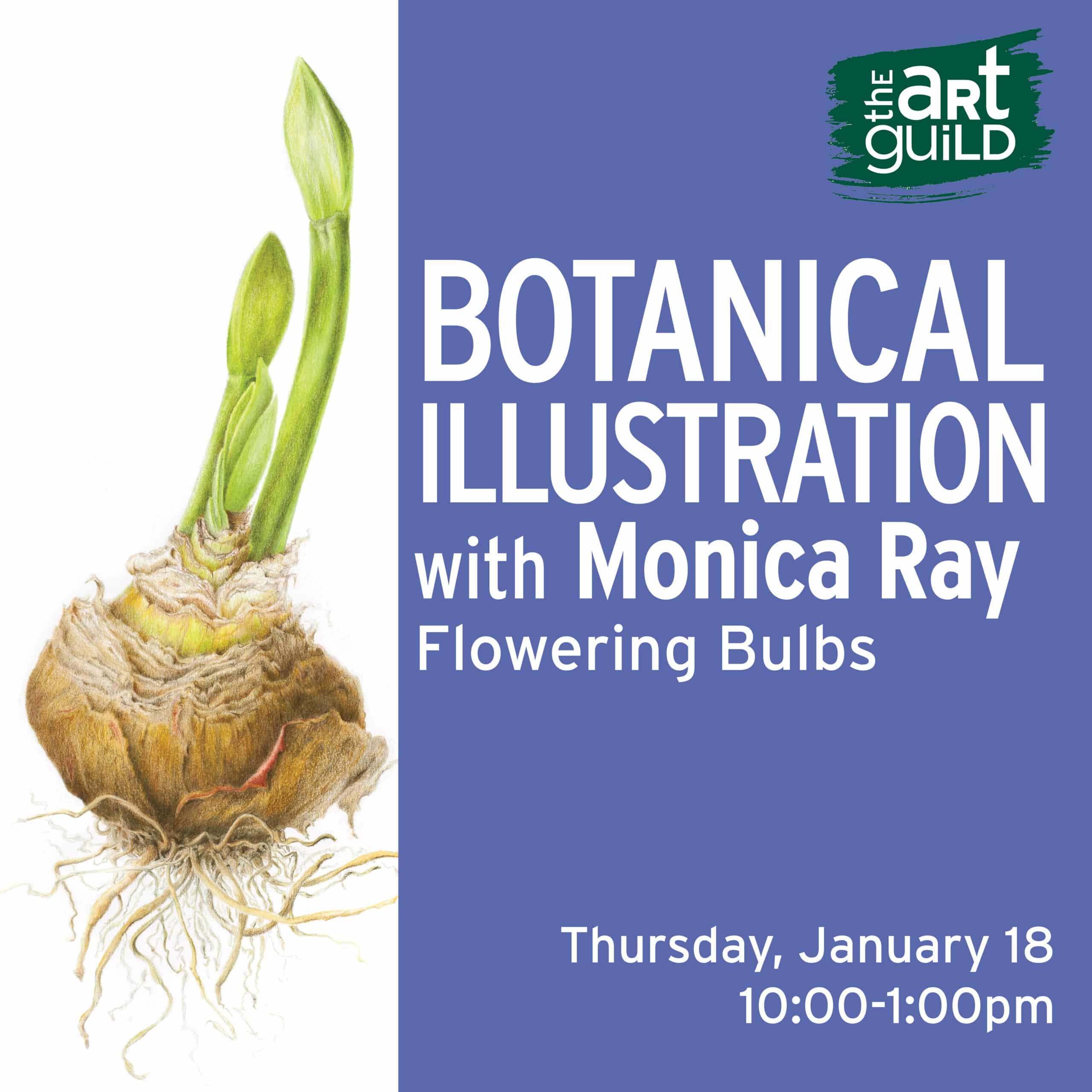 Most flowering bulbs are planted in fall for spring color or can be forced to flower earlier. The bulbs themselves can be admired for their form, texture, color, tangled mass of roots, and possible emerging leaf shoots. In this workshop we will focus on rendering a bulb of your choice in colored pencil. Practice color matching and layering techniques to build, and burnish color. Learn how best to imply the papery skin of the bulb and systematically capture the tangle of roots. Please bring a bulb of your preference to class.
