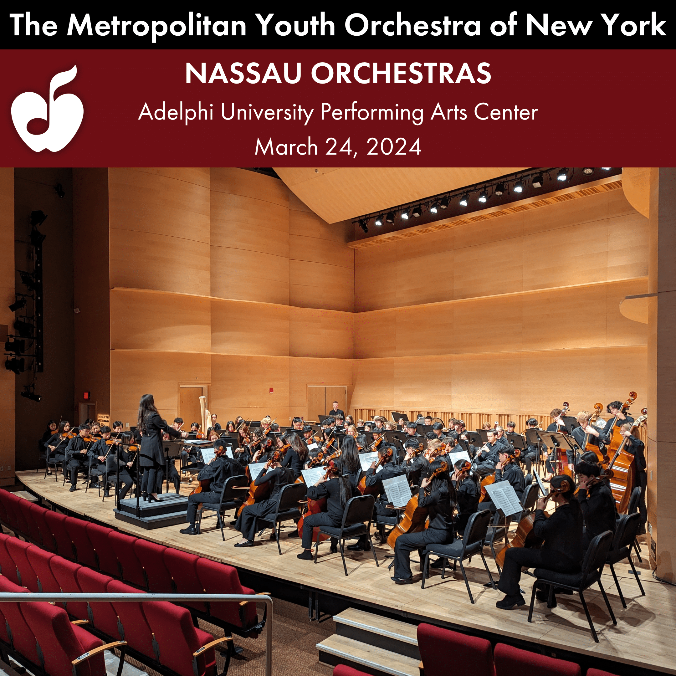 The Metropolitan Youth Orchestra of New York invites you to our Nassau Orchestra concerts on Sunday, March 24, 2024.