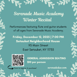 Enjoy performances featuring flute and guitar students of all ages from Serenade Music Academy. In celebration of the holiday season, […]