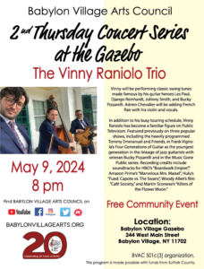 The Babylon Village Arts Council will present its 2nd Thursday Concert on Thursday, May 9 featuring The Vinny Raniolo Tro. […]