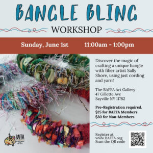 On Sunday, June 1st, BAFFA presents a Bangle Bling Workshop with fiber artist, Sally Shore. Learn to craft a unique […]