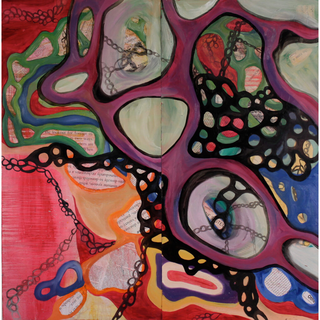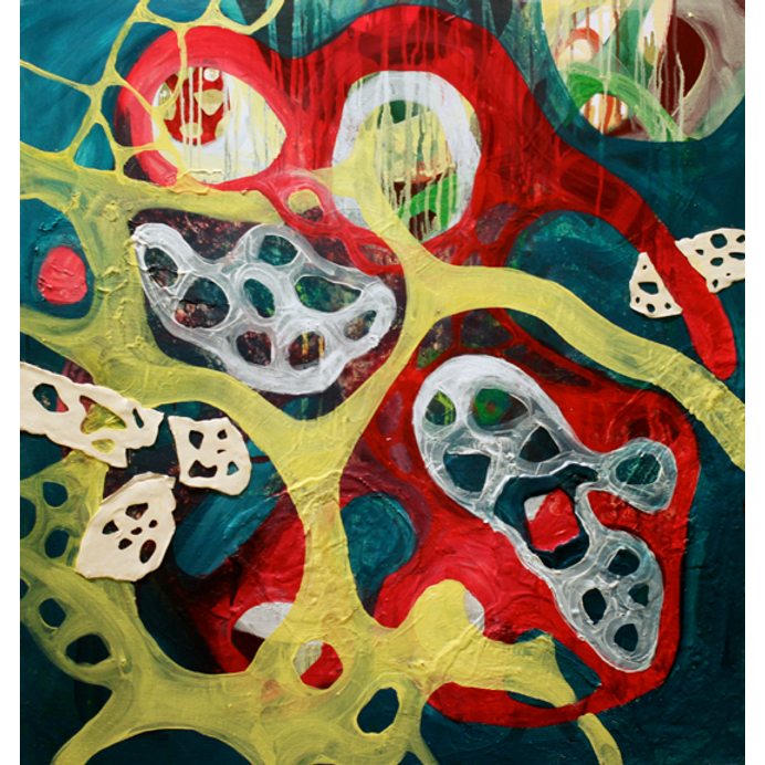Kristen Tinari always had a strong interest for color and discovery of her physical surroundings. This drew her to express herself through painting from a young age. Throughout her studies towards her BFA at the University of Delaware, she worked with a variety of mixed medias and explored the physical application of paint. A specific project, the macro vs. micro sparked Kristen’s interest in the cellular form and the research behind it. Intrigued by this topic, specifically autoimmune diseases, she explores it in various forms of painting. Her work has been in group exhibitions in Wilmington, Philadelphia, Brooklyn, and LI. She was the recipient of the Lynn Sharp Award at the University of Delaware in 2013.