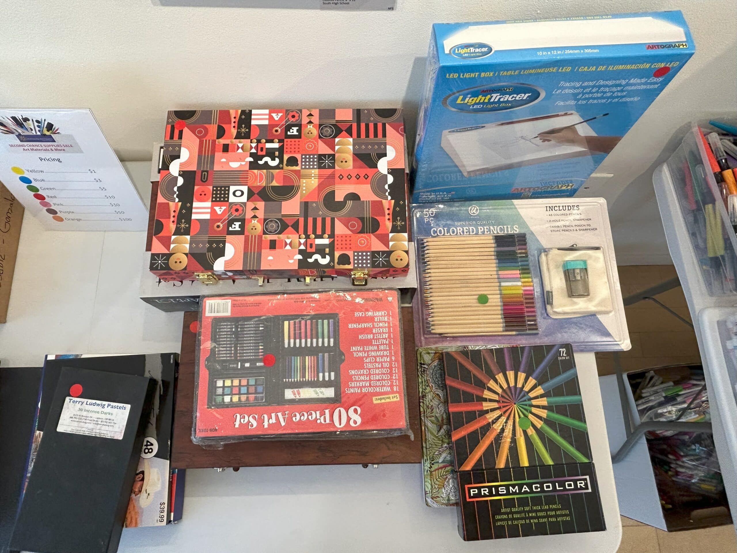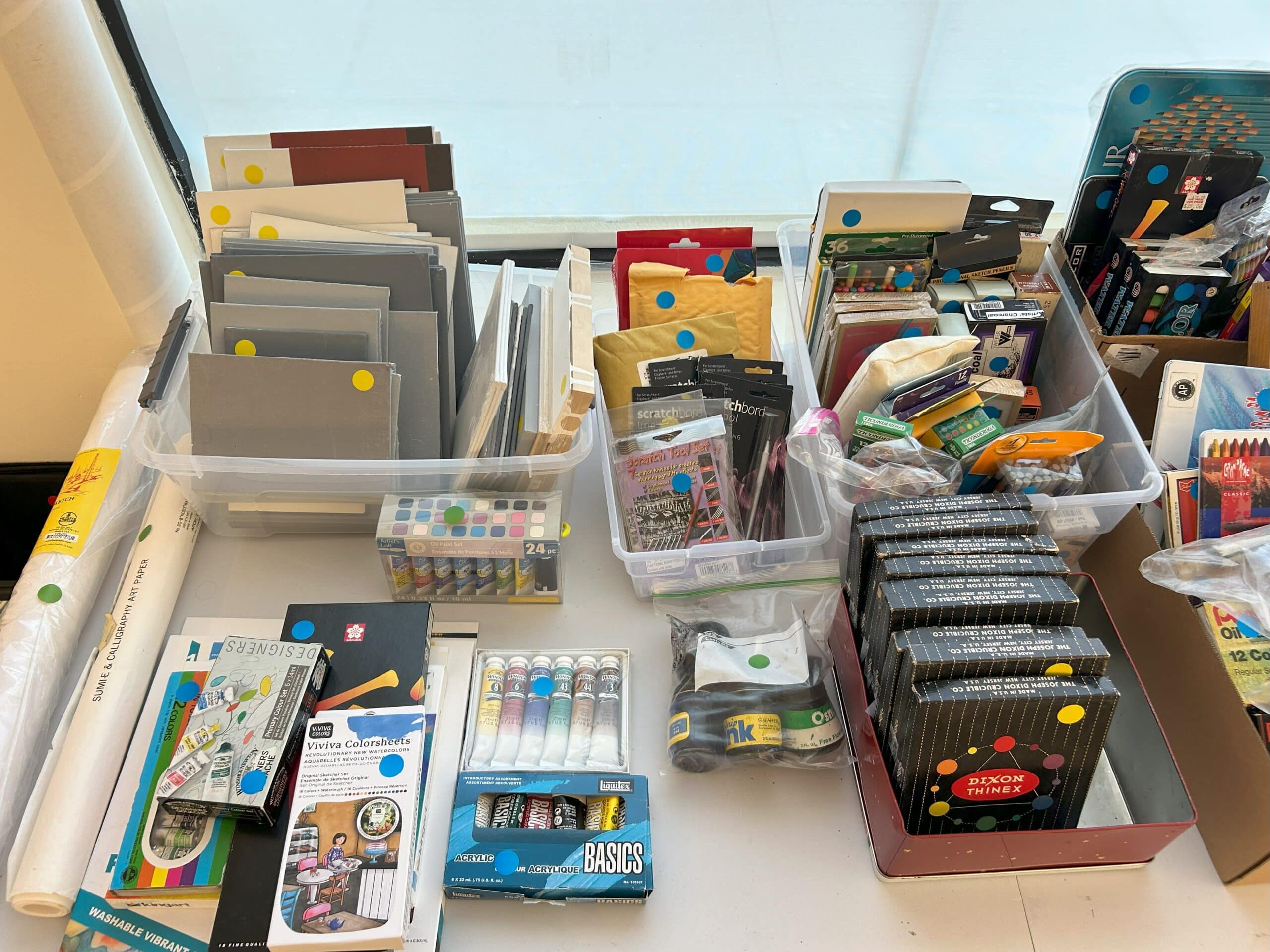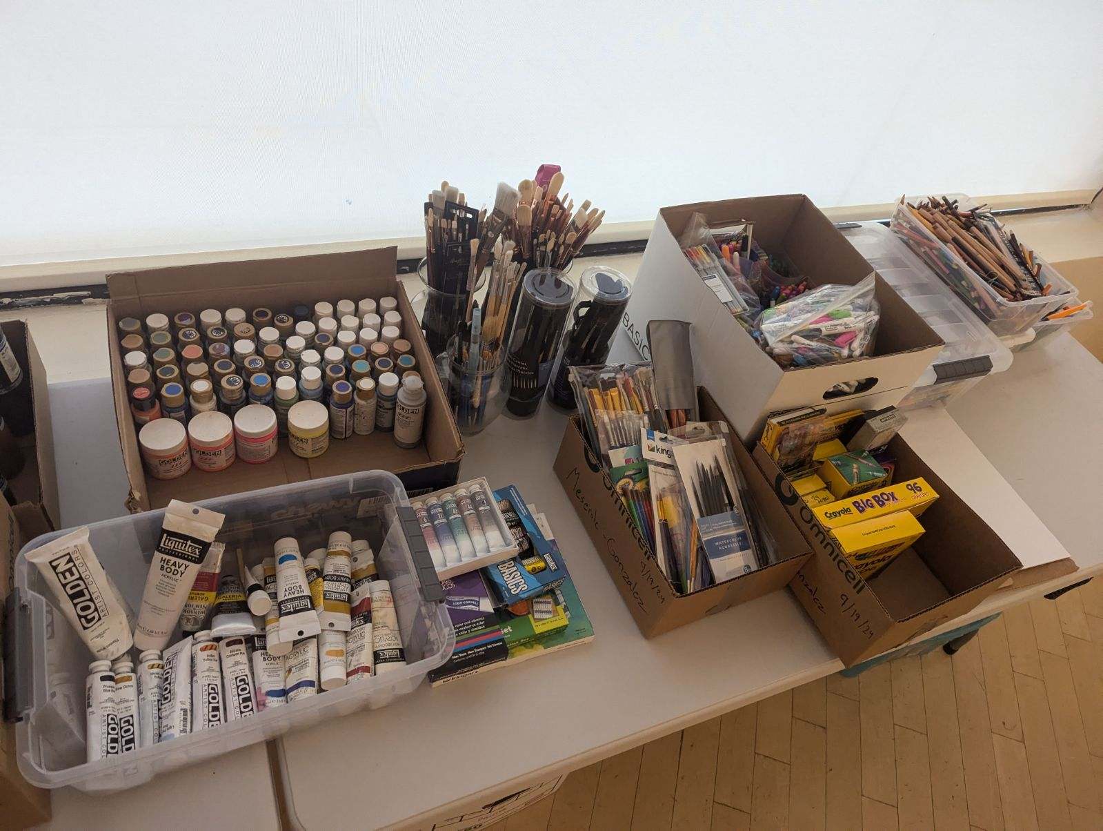 We are accepting creative material donations. No frames or glass please. For questions regarding donations email Maureen Starr, Assistant Director at MStarr@huntingtonarts.org.