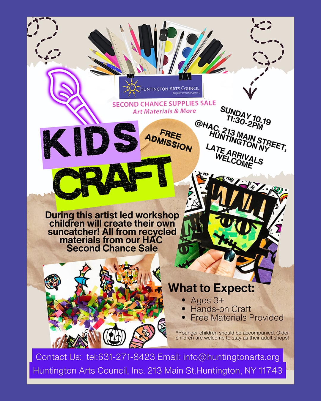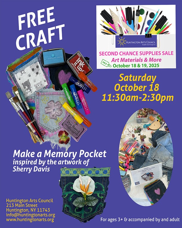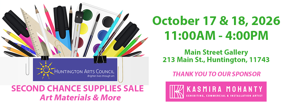 All major forms of payment are accepted. *Proceeds from Second Chance Supplies Sale support the general programs of Huntington Arts Council.