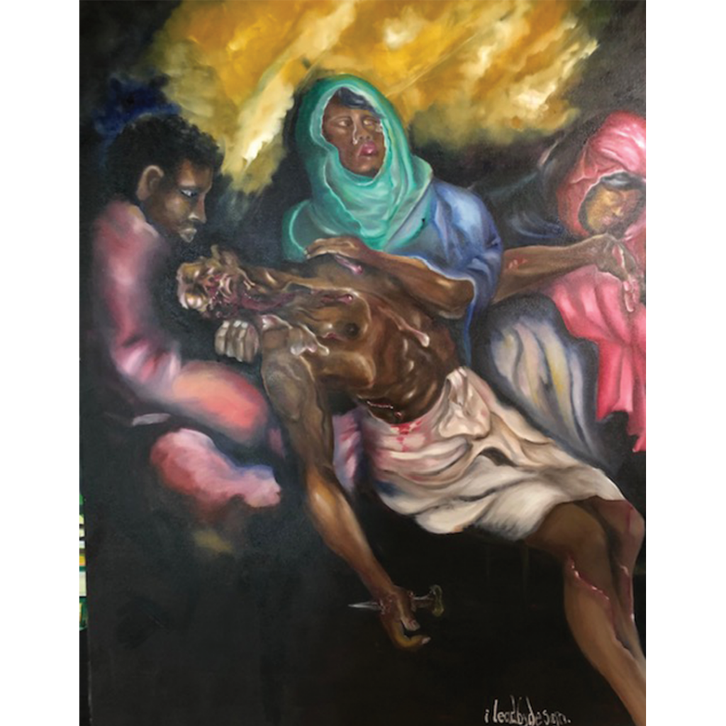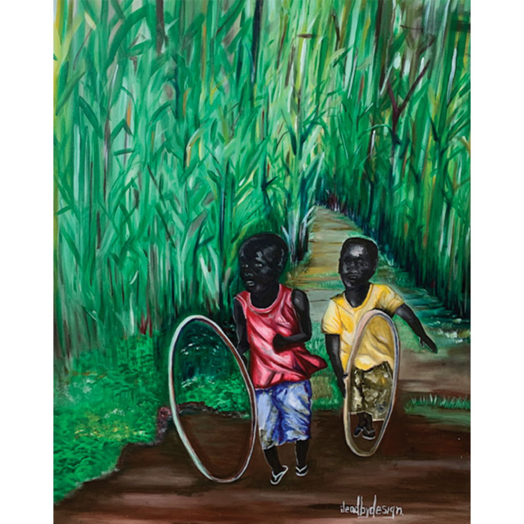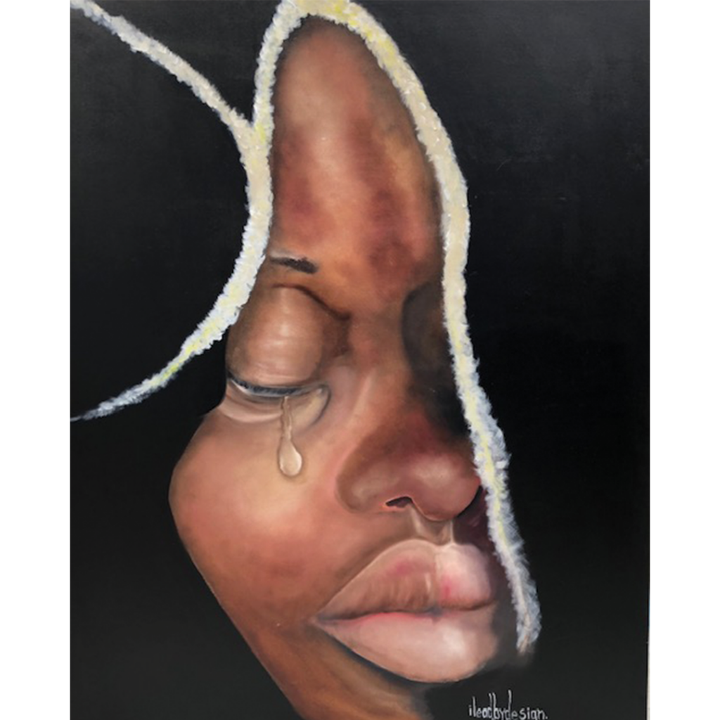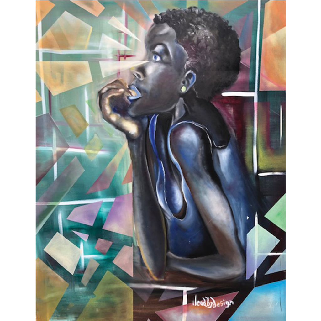 Ebony Thompson aka ILEADBYDESIGN, is an expressionist from Freetown Sierra Leone in West Africa. His passion in communicating the African experience and encounters at home and abroad especially in America has led to representation of his voice in Art. He uses Art defined in the form of earth tone colors on canvas and illustration boards. Through this he has reached out to multiple entities to spark conversation and highlight various societal issues.