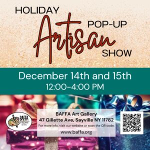 BAFFA’s third annual Holiday Pop-Up Artisan Show will be at the BAFFA Art Gallery in Gillette House, on December 13th […]