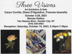 Three Visions, a collaboration between artists Caryn Coville, Diane D’Agostino and Frances Ianarella will be on exhibit at Barnes Gallery, […]