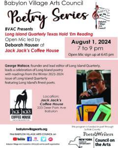 The Babylon Village Arts Council will present its Poetry Series on Thursday, August 1 featuring George Wallace. George Wallace, founder […]
